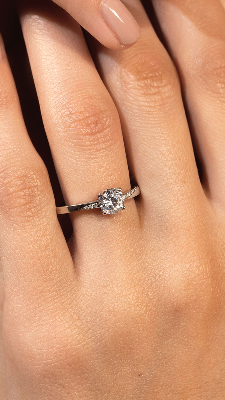 Un diamant central pour l’éclat, accompagné d’un fine ligne de diamants montant du flanc de l’anneau pour revenir sur le dessus. Symbole d’élégance et de délicatesse, avec le modèle Secrète, tout est question de perspective.