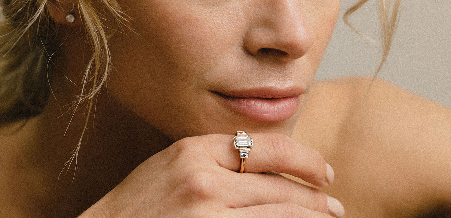 Flanquée de deux pierres latérales, la bague de fiançailles épaulée évoque la force du lien et la beauté de l’harmonie. Elle raconte un voyage à trois temps : une pierre centrale qui capte l’attention, des épaules qui l’accompagnent, et une composition qui donne à l’ensemble une allure sculpturale.