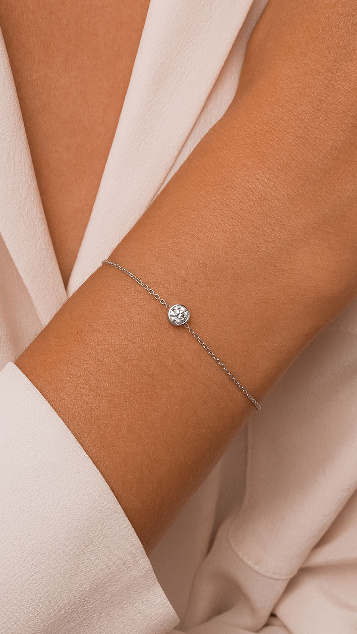 Le bracelet Émouvant s'inscrit dans les grands classiques de la joaillerie revisités par nos artisans joailliers. La technique du serti clos met en valeur la beauté du diamant unique, monté sur une chaîne en Or 18K entièrement personnalisable.